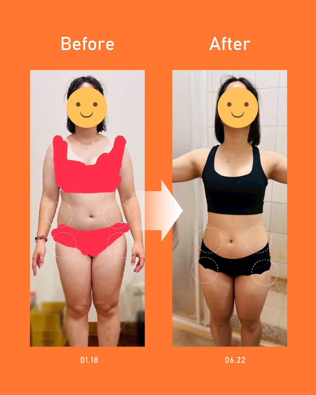 半年前 只敢穿寬鬆、修身的衣服