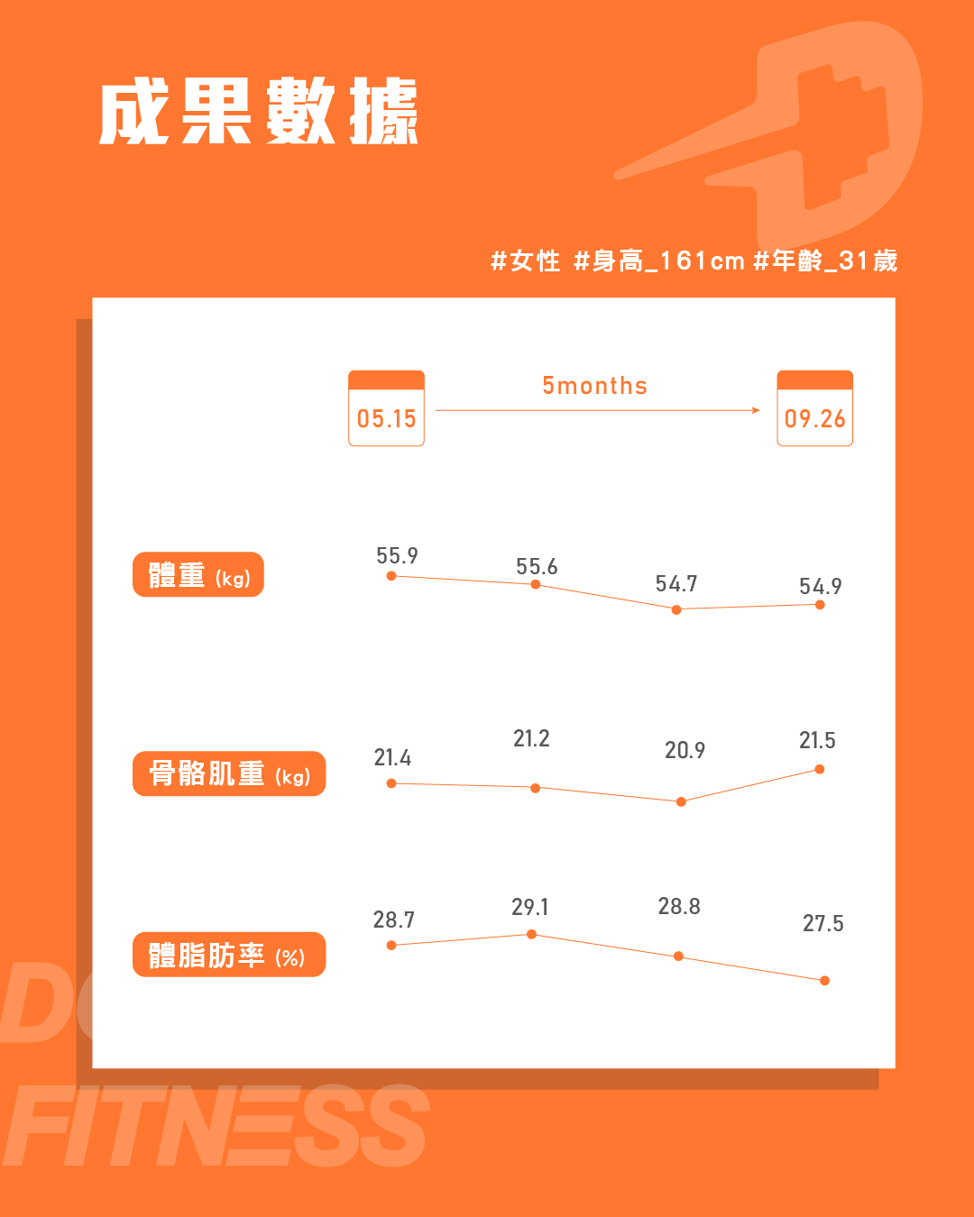 體脂也成功從33.6%降到28.5%