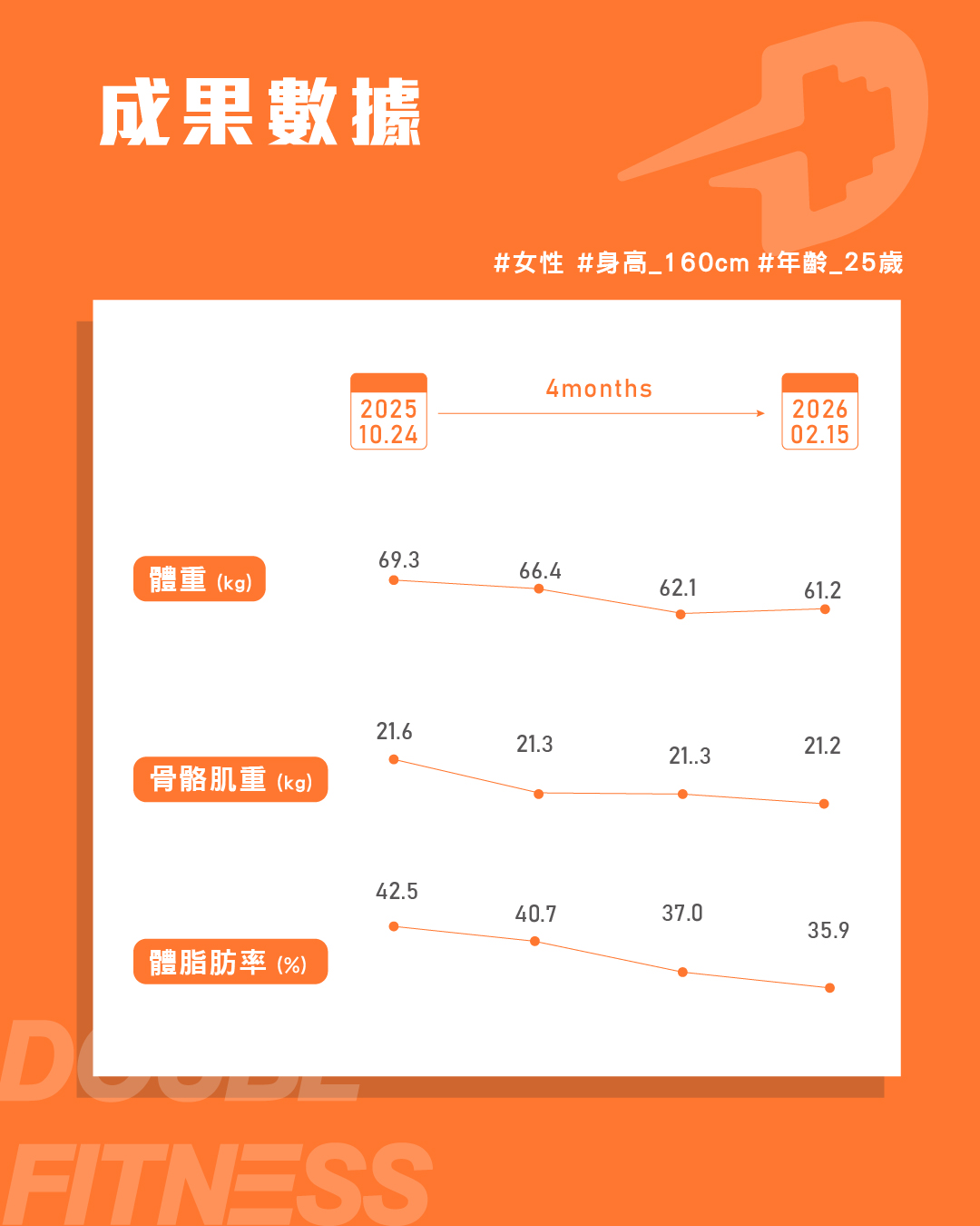 • 體脂率 -16.4%
